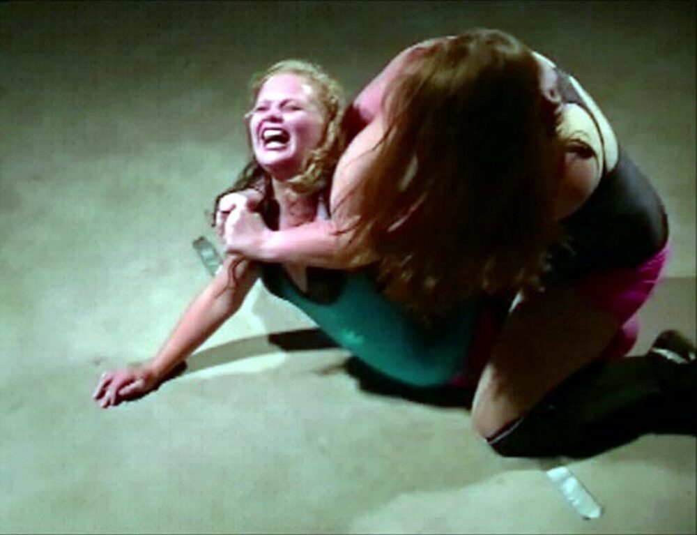 But then, just as things seemed utterly bleak for the blonde, Khloe starts to fight back! Fired up and tired of being a punching bag, she starts to punish her opponent with dropkicks and forearm smashes, quickly leaving Mary reeling. It then becomes a much more balanced battle as the two girls each stay on the offensive.